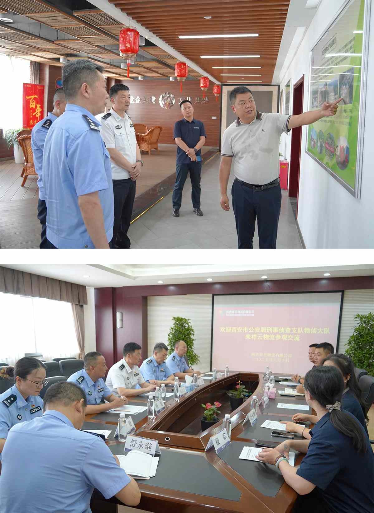 6月10日上午,西安市公安局刑事侦查支队物侦大队大队长马志云、副大队长张弛、杨旭,物侦大队二中队指导员周姗、副中队长任鹏、物侦大队舒永继一行6人,到陕西祥云物流有限公司参观交流。公司副总经理孙荣祖、秩序保障部副经理崔明夫等相关人员全程陪同。