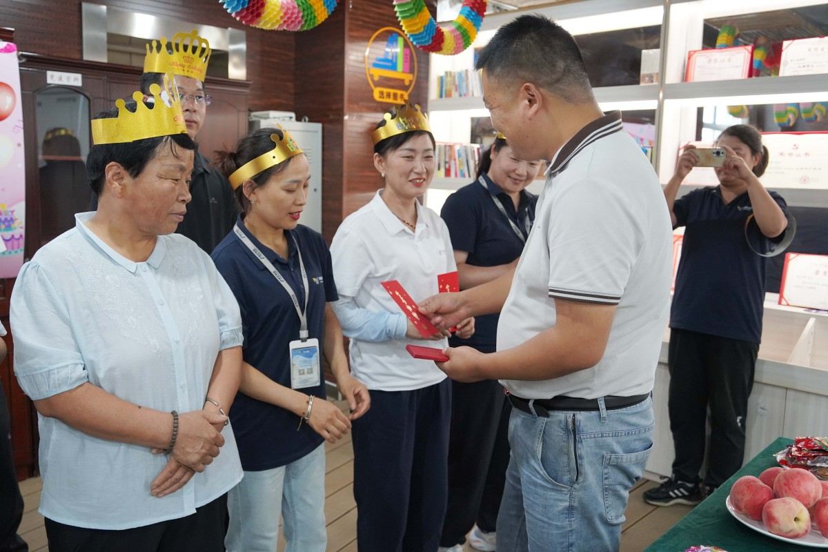活动伊始,公司副总经理孙荣祖代表公司向寿星们送上了诚挚的生日祝福,肯定了员工们在过去一段时间里为公司发展做出的努力和贡献,感谢大家在各自岗位上的辛勤付出,并鼓励大家继续保持积极的工作态度,与公司共同成长,携手创造更加美好的未来。紧接着,副总经理孙荣祖、工会主席崔明夫依次给寿星们送上令人期待的生日红包,寿星们接过红包,脸上瞬间绽放出惊喜与感动的笑容,将温暖的氛围推向高潮。