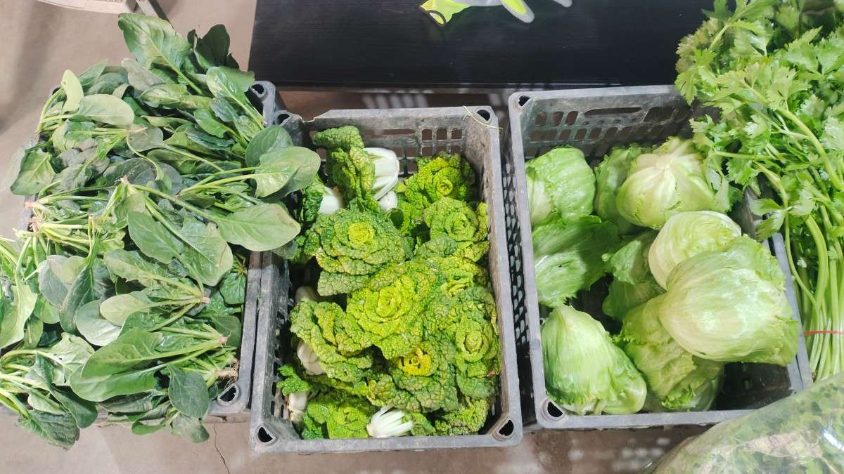 新鲜蔬菜更是祥云菜园的“鲜”字招牌,始终坚守“当日现摘、即时直送”的黄金准则。每日清晨,当菜叶还挂着晶莹晨露,鲜嫩的芹菜、生菜、菠菜等时令蔬菜便被采摘下来,经快速分拣、简单整理后,直接装上刘师傅的三轮车,一路鲜意直达维修组办公室。省去多余流通环节,最大程度锁住蔬菜刚离田间的脆嫩口感与丰富营养,让商户端上桌的每一份蔬菜,都带着扑面而来的自然鲜气。