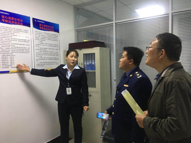 随后两位领导来到放心消费创建办公室进行了学习交流。放心消费创建小组组长孙晓琴为其详细分享了,陕西祥云物流对于园区放心消费创建工作的经验。他们认真听取孙主任的介绍后感叹道:陕西祥云物流创造性的进行分区域管理,完善各类放心消费创建制度,组织商户周例会,评选优秀商户等管理措施都是值得他们学习与借鉴的,这为他们进行放心消费创建工作提供了很好的思路。两位领导对我司的放心消费创建工作,赞不绝口,称赞到我们的工作做得很用心,很到位,值得他们学习借鉴。在临离开时,他们走访了园区内的优秀商户,对商铺内的放心消费创建内容,也给予高度的称赞。